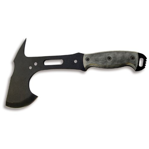 The Ontario Ranger RD Hawk is a serious hatchet/axe with the fine qualities of an OKC knife. With fine Micarta handle scales and a black texture powder coated blade, it's difficult to decide whether you are holding an axe or holding a fine Ontario knife when you pick up the RD Hawk. Situated in New York State's scenic Southern Tier, Ontario Knife Company produces one of the most comprehensive, wide-ranging product lines in the cutlery industry today. While being a worldwide supplier, the Ontario Knife Company is also a major supplier to the U.S. Government and its military. Ontario has built its reputation on a heritage of uncompromising craftsmanship, quality materials and components, and a steadfast commitment to its workforce. Black textured and powder coated steel blades prevent rusting or scratching. Blade is hardened to 53-55 HRC. Black Micarta handle scales. Includes lanyard hole in handle. Includes nylon sheath.